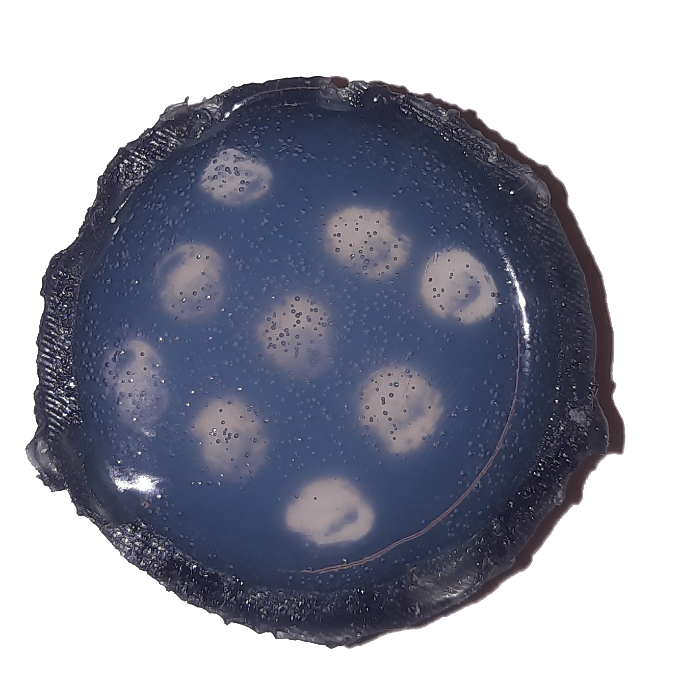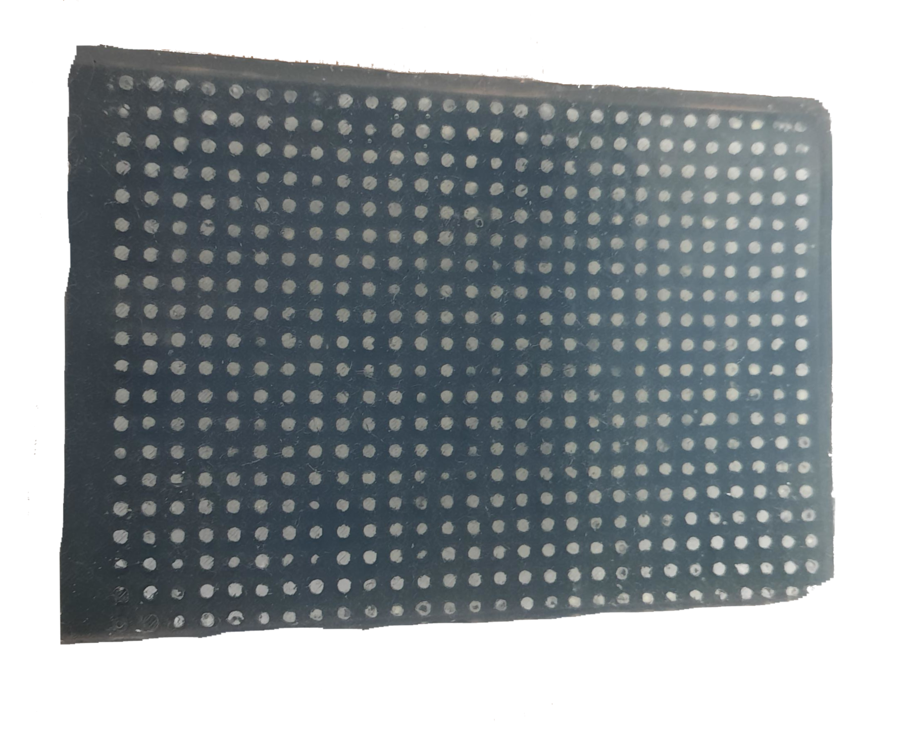 We made some alternative designs of TacTip to expand upon the optical marker detection methods. The main principle of the TacTip sensor is the displacement of the optical markers. We devised a design that uses a flat silicone rectangle with a series of optical markers on the surface. With a camera facing this mesh, we could get tactile feedback over a surface area of 100x150mm. Each dot was 2mm in diameter, which is larger than the optical markers on the TacTip. Silicone was poured into the mould, then once set each dot was painted white (as we did with the original TacTip). Using a layer of clear silicone we made the flesh part of the skin, where a box of the same dimensions as the skin acts as the mould. Our skin is placed in the bottom of the box, with optical markers facing up. The clear silicone is poured onto the skin. We do this to protect the optical markers from having too much pressure making the paint wear down, and to provide a sponge-like texture for the skin to resist force. After making the silicone skin, a box was constructed to hold the camera, and above it a transparent plate between the skin, focal length and camera. Around the sides, it was taped with black to eliminate light interference through glare. The optical markers of the skin were painted white and the skin was placed in the box (without a gel layer). Combining the properties of the artificial skin and TacTip, we developed a full tactile foot that sensed both the bottom and side contact. Having a larger surface area of haptics on a leg would open up exploration into more complex styles of locomotion.