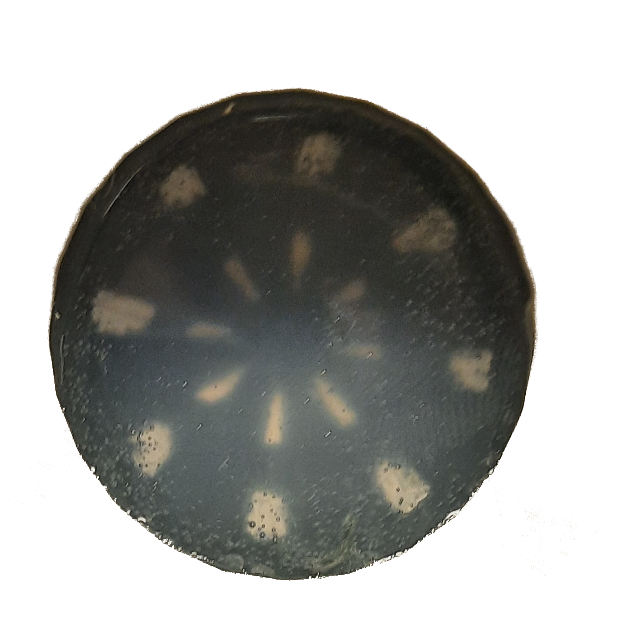 The files were printed using PLA filament on an industrial high-resolution printer (Stratasys Objet 30 Prime). Between the tip and the main body; there is a PCB of small LEDs (3.15V 1608 (0603) SMD) that provide light (45-180mcd each). The camera detects reflection of the LED light from the white painted tips on the surface of the skin. The PCB made use of 6 surface-mount LEDS and 6 120ohm surface-mount (0603) capacitors. The LED PCB was mounted in the rim of the main body, where the LEDs face the skin, to illuminate the pointers for the camera. The wires are pressed into a printed groove that leads to a hole allowing for power connection. The camera was mounted onto a custom 3D printed part that connected to a USB wide-angle lens webcam. The power of the LED ring was connected to the power of the USB camera for wiring efficiency. Soft-bodied skins are produced through silicone within a 3D-printed plastic mould. This mould was measured to fit the silicone inside a thin layer, with small holes in to create the tips that would later be painted white. The moulds were printed in high resolution to capture the 1mm diameter of the optical markers. The outcome would have a 42mm diameter exterior and 38mm diameter interior, where the skin has a 2mm thickness. Experimentation on thickness of the skins, and its effect on sensitivity was not the focus of this thesis, but remains fairly unexplored but has gone down to 1mm thickness. If the silicone is too thin there is an increased chance that it will break in the mould, therefore to ensure maximum durability we always used 2mm. Silicone was made and dyed black to prevent light interference or any more glare than the background levels. After being poured into the mould and left for twenty-four hours, a solid yet flexible TacTip was produced. The mould required a lubricant spray over the plastic layers to prevent the tips from getting pulled off while being removed from the mould. To paint the optical markers we used a thin layer of plastic sheet with acrylic paint. The sensor skin was turned inside out (so the marker positions were on the exterior) and gently dabbed over the paint.