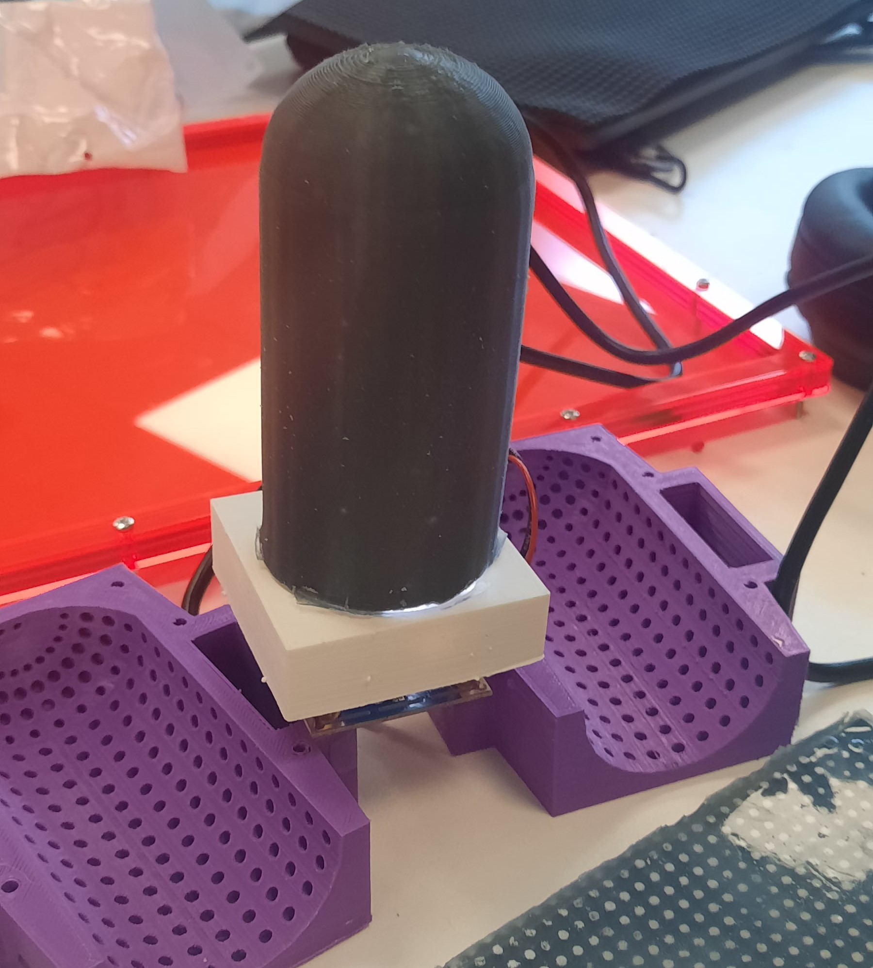 The TacTip parts were 3D printed and consisted of a camera mount, main body, tip, and LED ring. The camera mount was edited in CAD software to mount our webcam (Arducam USB wide-angle lens), and the main body attached to the mount via a series of screws.